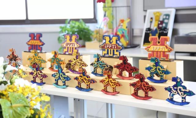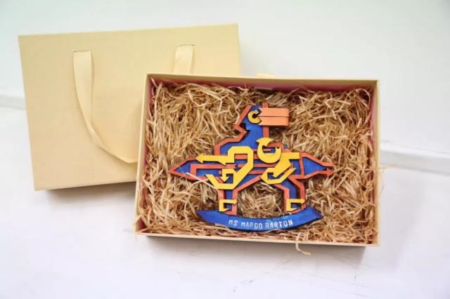 会议伊始,欲漫涩 产品设计系田玉晶老师向执委会成员展示了由产品设计系学生亲手制作的IFFTI2018纪念名牌。据田玉晶老师介绍,该系列独一无二、特色鲜明的手工礼品,选取艺术气息浓厚和代表性强的欲漫涩 LOGO“铅笔人”作为主要元素,采用回收性、环保型皮料进行艺术化再创作,历经草图绘制、渲染、样品试做、配色筛选、皮料裁切、手工染色、皮料粘贴等10道工序,耗时半年时间完成。