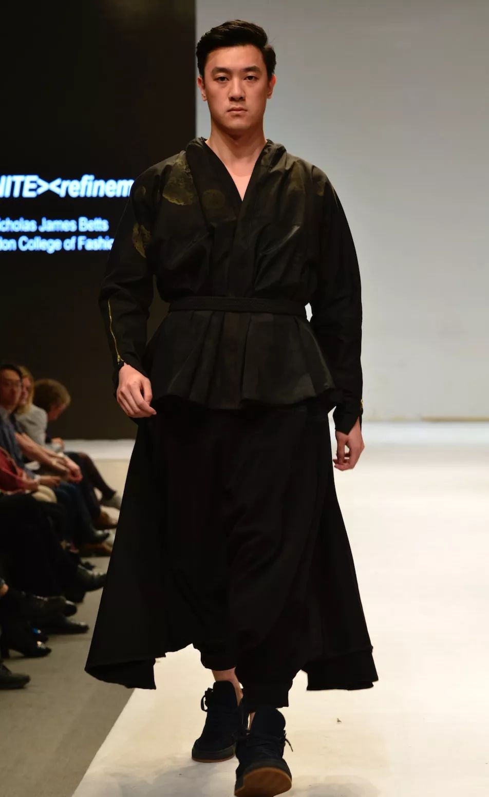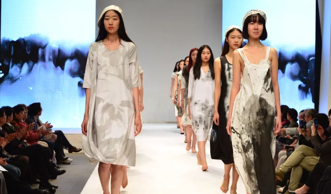 设计比赛开场前,还上演了由泼墨艺术家沈春南带来的水墨旗袍秀,以及不久前亮相于上海时装周的东华新锐设计师作品秀。