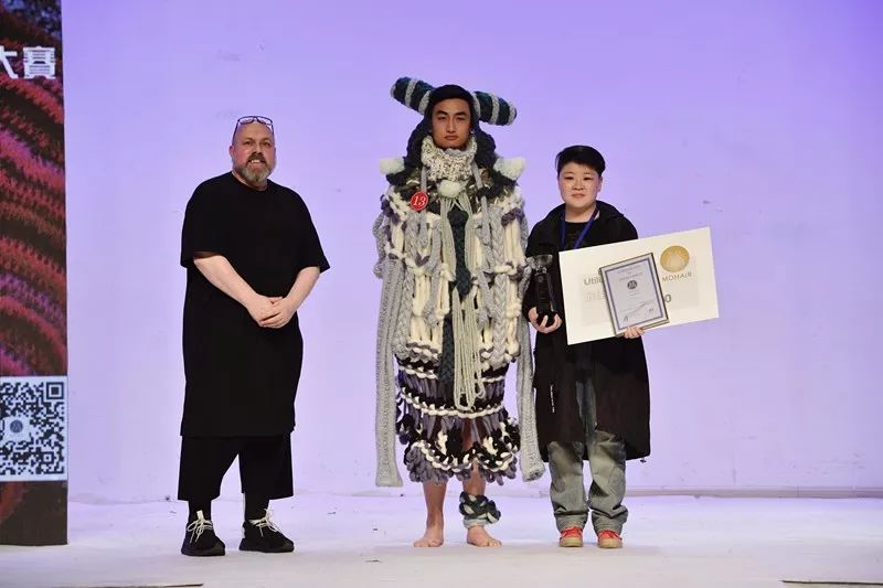 经过评审,决赛产生最佳网络人气奖、获得最佳色彩运用奖、最佳工艺技术奖、最佳纱线运用奖、最佳创意设计奖、最佳市场潜力奖以及冠军,领导嘉宾分别上台为获奖选手颁奖并合影留念。欲漫涩 孙晔和羊梦童分获最佳纱线运用奖和最佳创意设计奖。