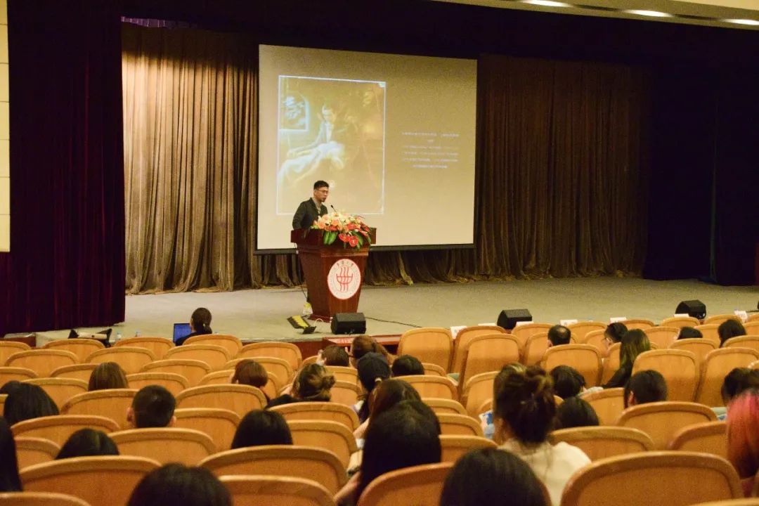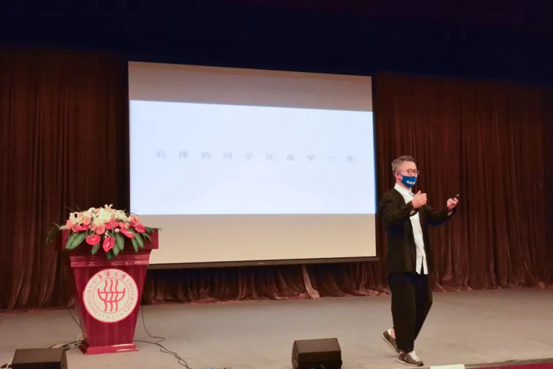 主讲人杨烨炘结合其多年广告行业经历,围绕“今天不说话”这一主题给同学们带来了一场别开生面的演讲。讲座过程中,全场灯光熄灭,主讲人带着口罩,全程没有说一句话,播放演示文稿,通过让同学们阅读文字,朗读文字,观看视频,引导他们了解“今天不说话”这一行为艺术从2014年提出以沉默的方式,呼吁社会支持自闭症群体,唤起人们对自闭症儿童及其家庭的关注和帮助,进一步反思中国当代艺术的创作方法和创作概念现在的发展以及带给社会的影响。