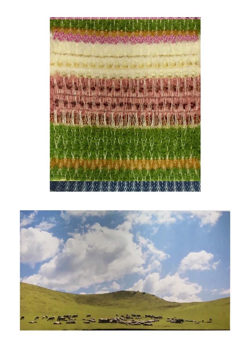在作品展示的环节,Elizabeth带来了她在英国的设计作品,根据自己的思路通过不同的特殊纱线的组合与构成,形成了与众不同的艺术效果和肌理效果。