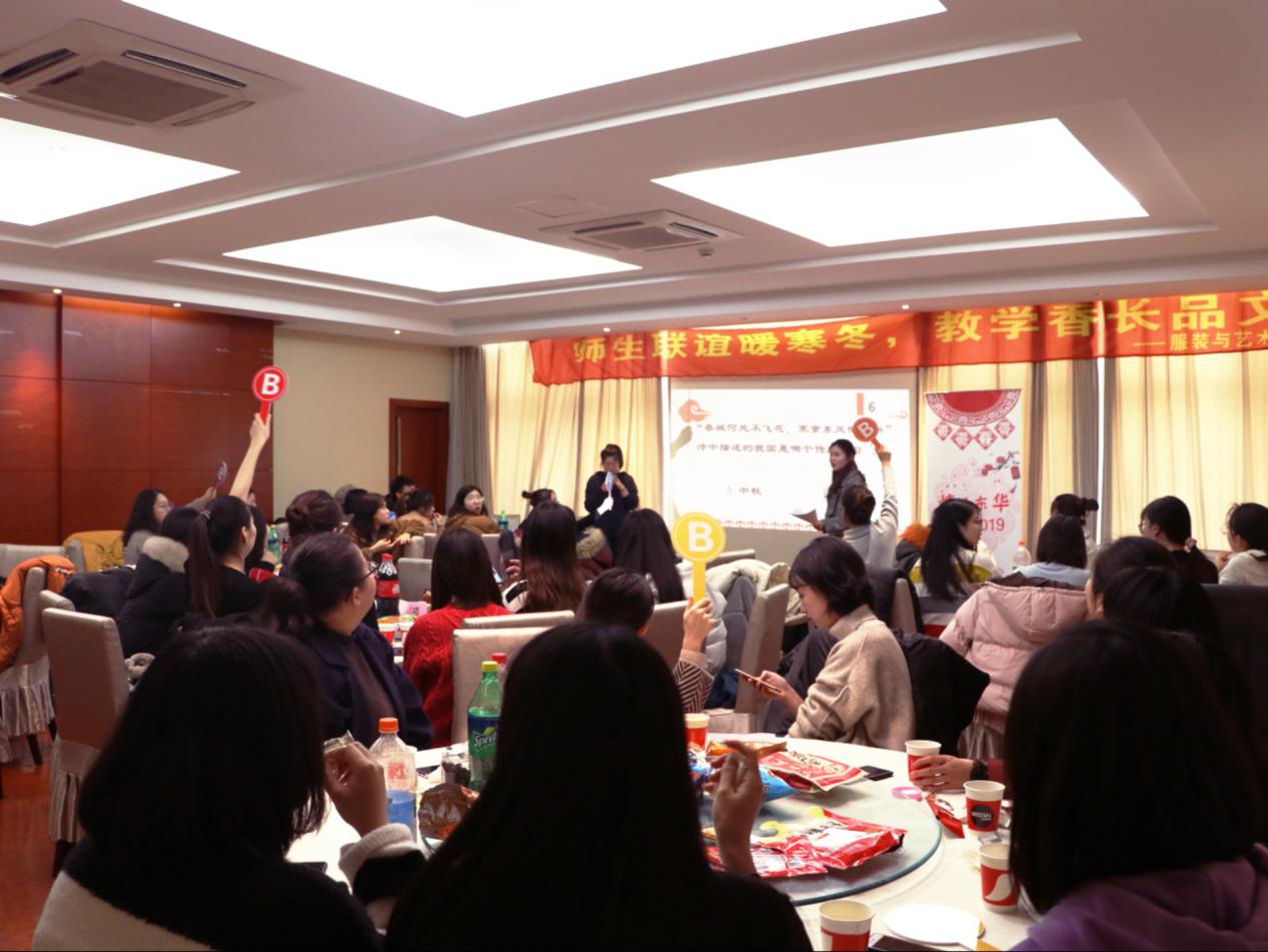 活动分为传统文化知识竞赛、“你画我猜”和包饺子三个环节。在传统文化知识竞赛环节,服装欲漫涩 18级研究生的6个班级代表队团结一心、努力答题,最终服装182硕、服装184硕、服装185硕代表队取得头筹。