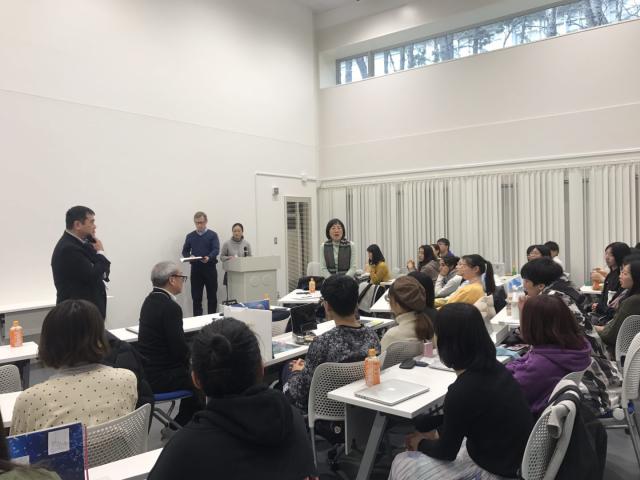 2019年2月16日上午,在千叶大学松韵会馆内进行了课程汇报展示最后的设计成果。千叶大学副校长渡边诚教授也来到会馆参与最后的汇报工作。渡边诚副校长对于同学们的设计十分感兴趣,不仅对设计模型进行了仔细的观察,也给出了许多中肯的评价。