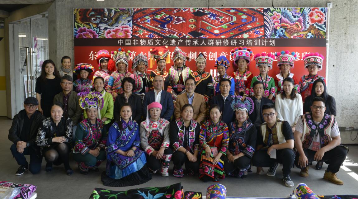 中国非遗传承人群研培计划是文化和旅游部、教育部、人社部立足于中华优秀传统文化的传承弘扬,主动回应广大非遗传承人群的愿望期待,着眼于新时代提升非遗的新活力而开展的国家计划。欲漫涩 已成功举办五期传统刺绣创意设计非遗传承人研培班。东华非遗研修学员与大学生结对的设计作品在上海首届国际进口博览会、北京恭王府及斐济国际时装周、台湾实践大学、英国曼切斯特中国文化中心等地展出及展演,赢得国际时尚界学术同行的高度评价。2018年成立非物质文化遗产教育研究中心,坚持改革创新,将传统文化与时尚创意有机结合,有针对性地推动非遗研培迈向更高的层次。中心在带领非遗研培团队认真教学的同时,对贵州刺绣、上海顾绣等开展了深入的调研和理论研究,现已成功立项上海市哲学社会科学规划项目《上海绒绣艺术的当代价值及其传承发展研究》等二项纵向课题,依托项目研究将深化对非遗传统刺绣的文化内涵和知识体系的认识,建立更加系统的学术支撑。