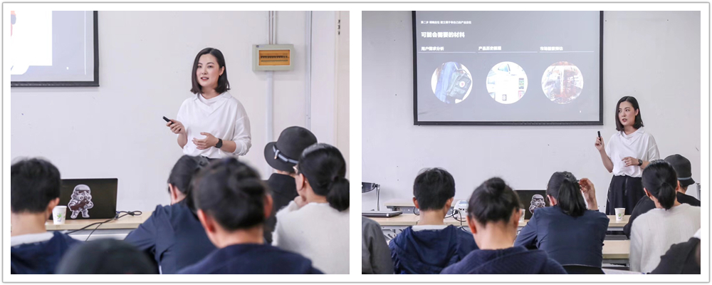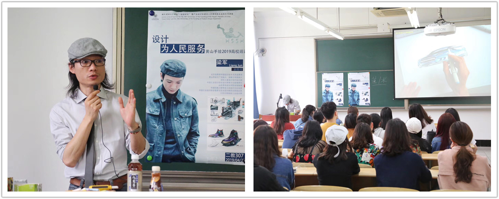黄山手绘创始人梁军在《设计为人民服务》讲座中,通过分享“工业设计”在国内的发展历程传递作为一个工业设计者应该有的知识、意识和责任,并通过系统的产品表达框架,启发学生们应该如何更有效地利用设计技法来进行设计思想的表达。