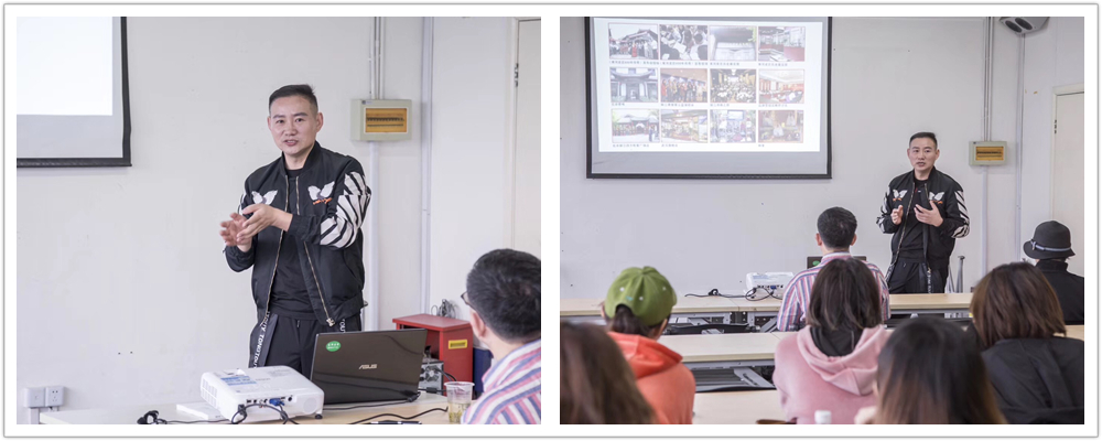 尊品设计创始人、产品设计系校友薛飞翔在《美学基础与社会实践》中分享了设计公司真实的建筑和室内的设计案例。作为产品设计唯一一届装饰方向的毕业生,他强调了装饰中的设计美感是让设计能够脱颖而出的关键,分享了创业中经历过的艰辛,鼓励每个人不断坚持、不断创造。