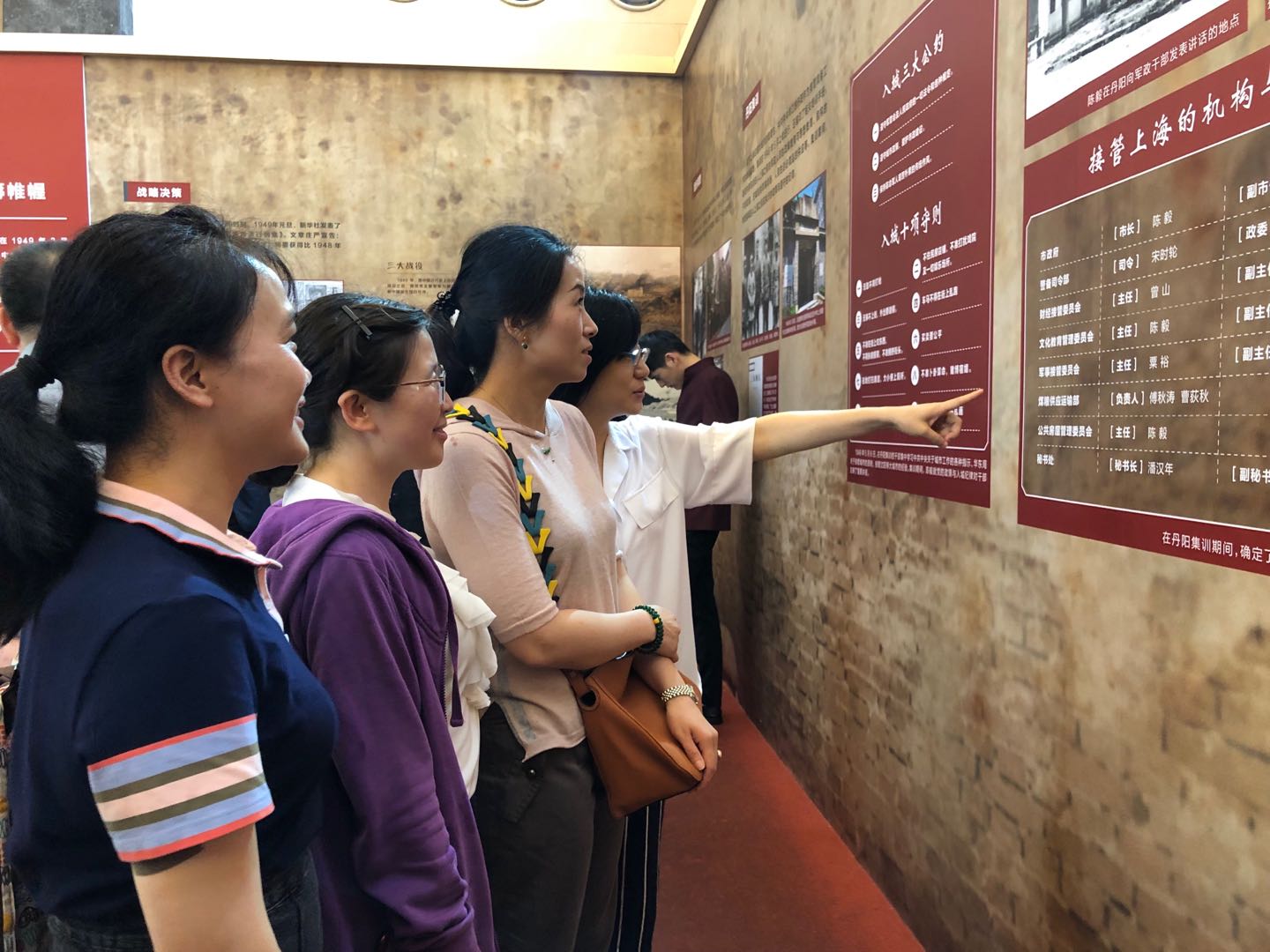 在展览现场,老师们在一幅幅反映上海解放70年来沧桑巨变的珍贵图片前驻足端详,在一组组反映城市改革发展的对比数据前交流讨论(图2)。通过此次参观展览,大家感触颇深,重温这段历史,不仅是要铭记先辈的丰功伟绩,更重要的是要继承和发扬他们的革命精神,牢记初心使命,立足本职岗位,保持昂扬斗志,紧密团结在以习近平同志为核心的党中央周围,为实现中华民族伟大复兴中国梦凝心聚力、砥砺前行。