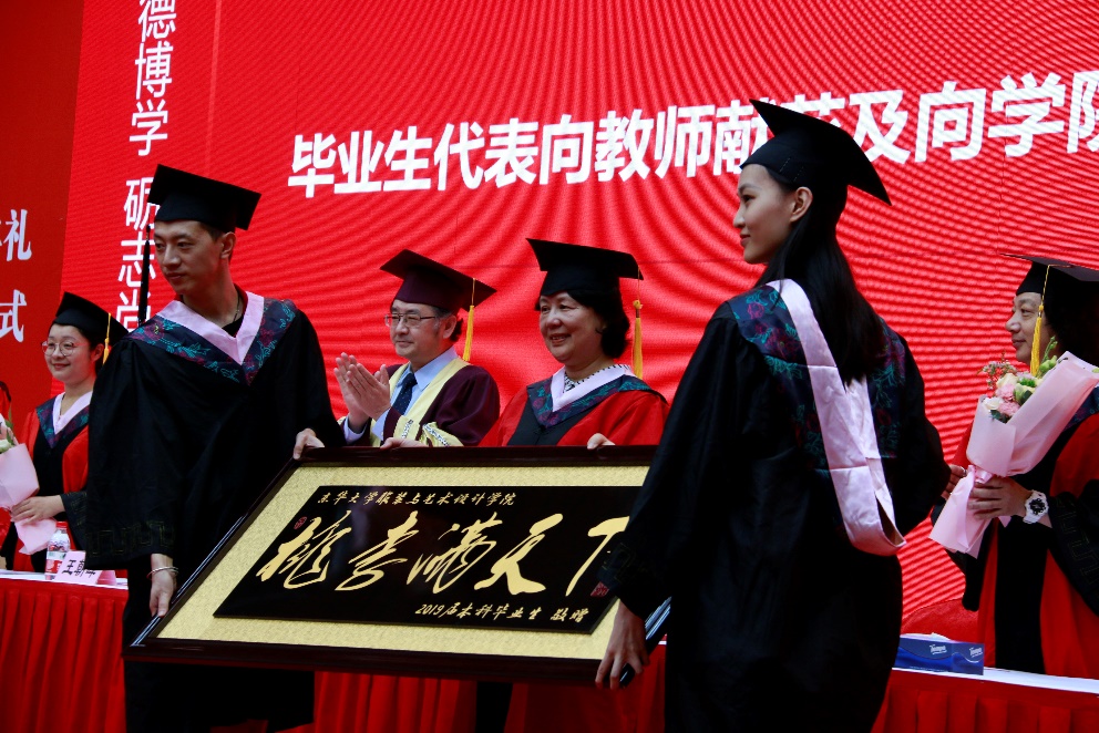 作为教师代表,产品设计系副主任余继宏将孔子《大学》中的“定而后能静,静而后能安,安而后能虑,虑而后能得”赠予学生,祝愿学生们明确人生目标,脚踏实地,勤思善学,成就更好的自己。