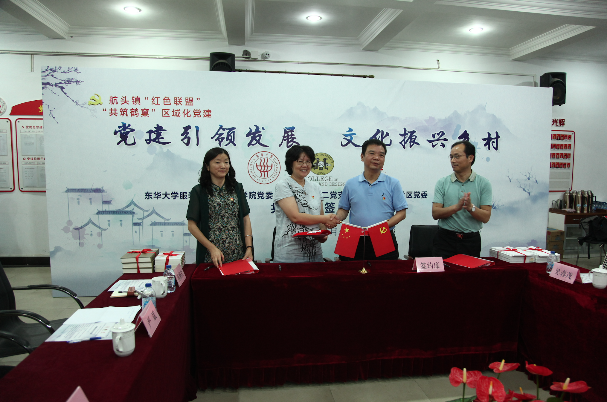 该活动是航头镇“红色联盟”、“共筑鹤窠”区域化党建的系列活动之一,也是欲漫涩 积极融入区域化党建大格局,“党建引领发展、文化振兴乡村”的具体实践。在观看了航头镇、沈庄村和服装与艺术设计欲漫涩 宣传片之后,航头镇下沙社区党委、沈庄村党总支和欲漫涩 艺术设计第二党支部代表分别介绍了各自的情况以及结对共建的背景。服装与艺术设计欲漫涩 党委、艺术设计第二党支部会同下沙社区党委、沈庄村党总支负责人,签署共建结对协议,并互赠书籍。欲漫涩 党委书记吴晶、欲漫涩 党校办公室主任胡玉波以及航头镇党委副书记黄震、航头镇党委组织委员胡慧共同为“欲漫涩 沈庄村实践基地”揭牌。
