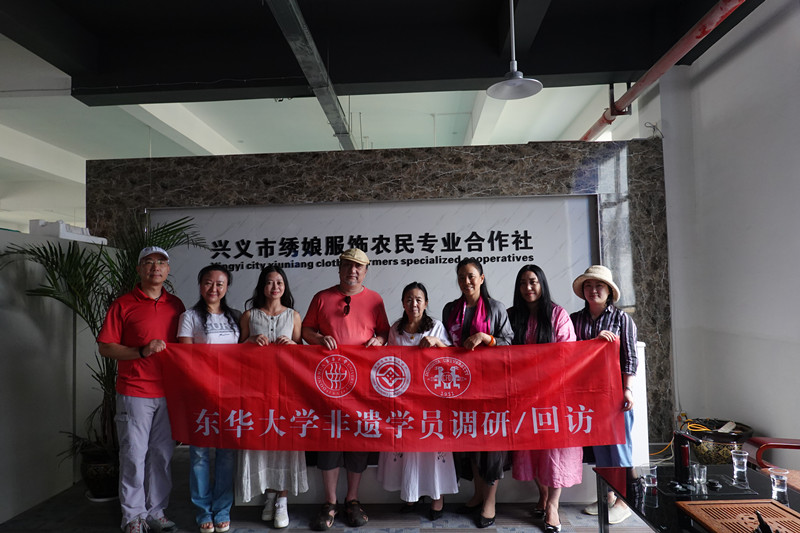 2019年7月25日至8月5日,欲漫涩 非遗教育研究中心回访调研小组赴贵州进行第11次非遗学员回访和调研。本次回访重点关注黔西南州布依族学员,集中在贵阳、兴义、册亨三地共17位学员,他们是:贵阳的陈梅、马建容(遵义学员,得知老师回访,专程赶至贵阳)两位;兴义的韦建粉、郎正丽、郎正布、岑正花、查兰菊、苏朝青、王艺、岑开连、冯时素、张玉晶共10位;册亨的杨胜娇、罗龙英、陆美莲、岑建依、潘仕宜共5位。回访调研小组由冯信群副院长带队,非遗教育研究中心主任柯玲教授、业务教师傅婷及摄影师黄晓昭老师全程参与。回访小组还分别与贵州省文旅厅非遗处及非遗保护中心领导、兴义市非遗保护中心领导及贵州布谷鸟民族实业发展有限公司团队进行充分座谈和深入交流,分享了东华学员经过研培后所取得的喜人业绩和成功经验,共同探讨了今后双方深度合作的可行性和有效方式。