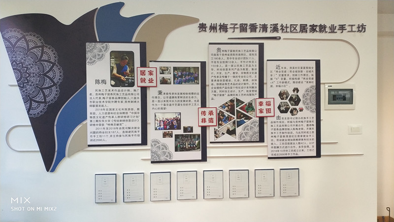 因此,陈梅获得了“贵阳市非物质文化遗产传统工艺创新基地”,这是政府给陈梅的肯定和鼓励。半年多的时间又有近百名绣娘和贫困姐妹因加入梅子留香而受益。