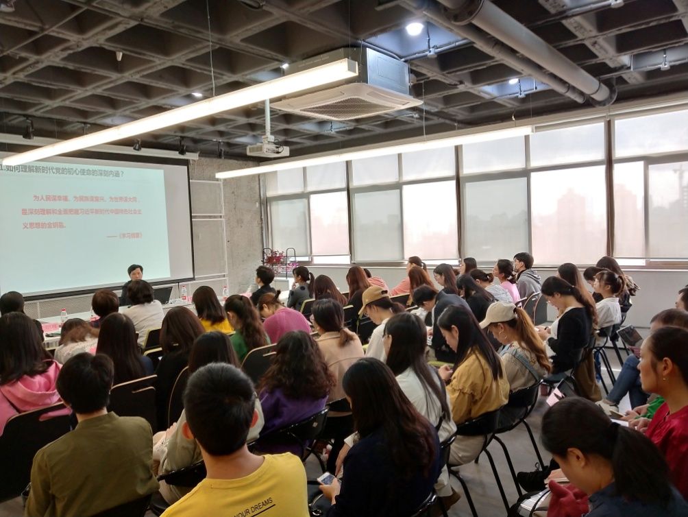 徐帆老师围绕“党的初心使命的提出及其重要意义”、“深刻理解新时代党的初心使命”、“立足岗位实际,坚守初心使命”三个方面展开。通过对党的初心使命提出的脉络进行梳理,帮助在座师生党员理解了党在新时代提出初心使命的背景和重要意义。针对内政外交民生的细节进行讲解,引领师生党员们理解新时代党的初心使命的深刻内涵。党的十九大报告开宗明义就强调不忘初心,牢记使命。目的就是提醒全党不要忘了中国共产党是什么,要干什么这个根本问题,不要在日益复杂的斗争中迷失了自己、迷失了方向。通过周永康、孙政才、令计划等人严重违反党的政治纪律和政治规矩的实例,详细阐述了在主题教育中应坚决防止形式主义。习近平总书记指出主题教育要实实在在,不能上下忽悠。最后徐帆老师重点讲解如何在本职岗位上做到“不忘初心、牢记使命”,对师生党员今后的学习工作具有启示意义。徐帆老师深入浅出的讲课,让在座的师生党员受益匪浅,更加明确初心、坚定信念。