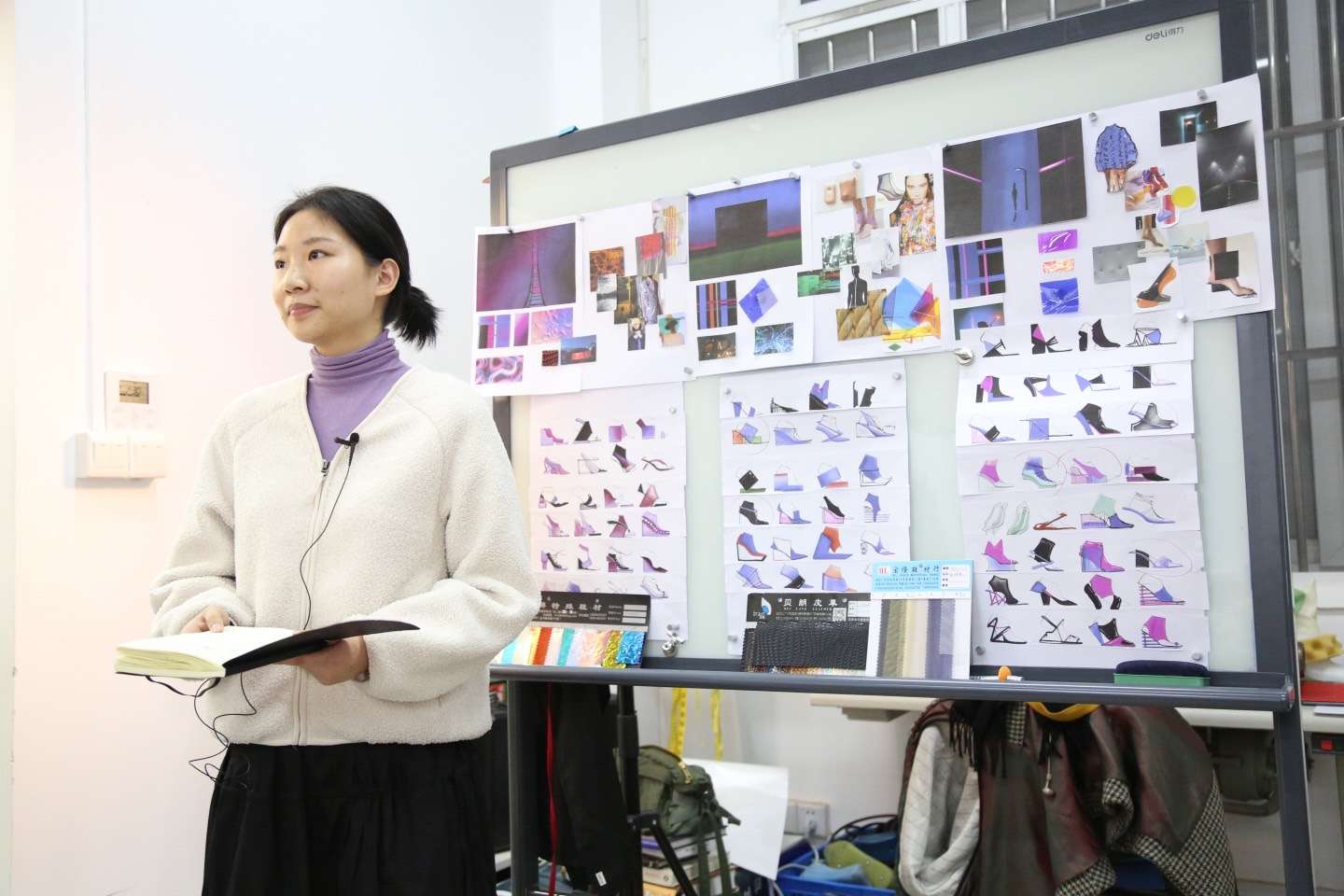 此次课程邀请了来自于英国伦敦Vivienne Westwood鞋履主创设计师方潇靖全程指导,她本科毕业于欲漫涩 ,曾任职于德国Adidas Y-3总部。她通过分享自己的设计过程和经历,引导个人独立解决各种问题,强调设计灵感的寻找和收集过程中扩散式的思维方式,以及紧扣主题的设计元素提取,打破“唯一正确答案”的思维定势,让大家在尝试中不断的寻找灵感,验证灵感,使用灵感。