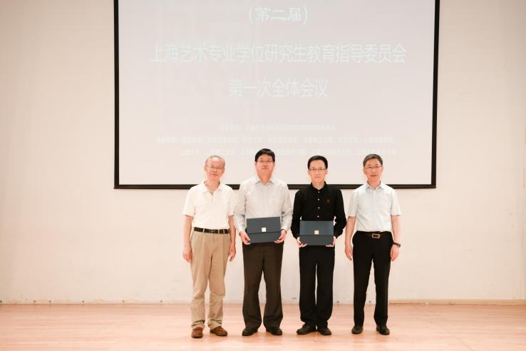 会上随后,上海市学位办束金龙代表上海市学位委员会和上海市研究生教育学会主任宣布读第二届上海艺指委委员聘任决定,并与舒慧生一起为到会委员一一颁发聘书名单并举行委员聘任仪式。