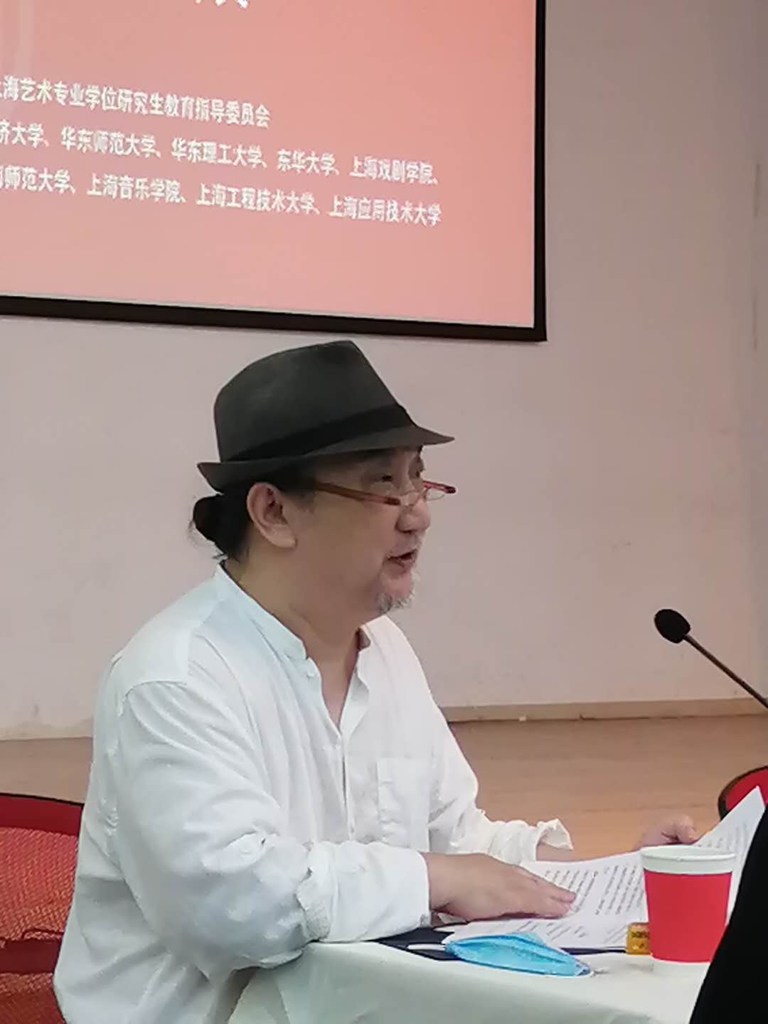 上海艺指委主任委员刘晓刚教授介绍关于第二届上海艺术专业学位研究生教育指导委员会总体工作思路和要点(图右)
