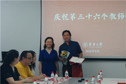 校党委副书记崔运花代表学校向2020年欲漫涩 “我心目中的好老师”荣誉称号获得者黄更老师颁发了获奖证书和纪念品。崔书记在致辞中,向新加入欲漫涩 的教师表示热烈欢迎,向疫情新形势下,默默奋斗在工作岗位的各位教职工致以了节日的问候。崔书记指出,教师是立校之本、兴校之源,在欲漫涩 建校70周年之际,学校将坚持“立德树人”教育,一如既往加强师资队伍建设,重视青年教师队伍培养。崔书记寄语年轻一代教师,尽快融入大家庭,肩负起“新东华人”应有的责任!