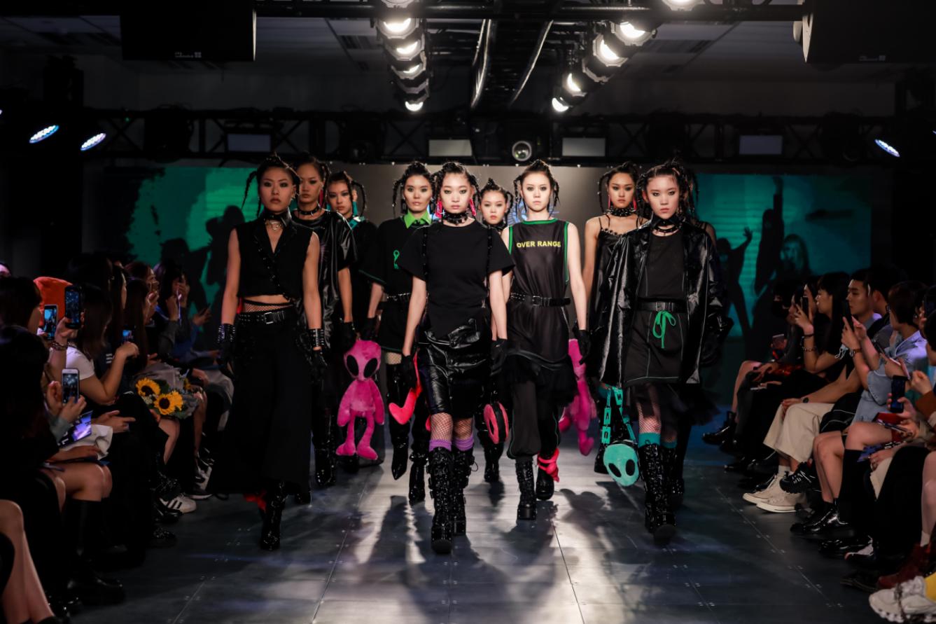 OVER RANGE 的品牌构想源自三位00后主理人在二年级时所共同完成的课程设计。本次发布的2021 春夏系列「星际之触」灵感源自科幻电影“E.T.: The Extra-Terrestrial 1982”。作为主理人自我表达和当下城市科技浪潮的象征,她们从剪裁、工艺、面料等多方角度展示千禧年的审美与不羁态度,在多个领域和风格上进行尝试。充满未来感的律动炸裂开场,朋克少女与外星人首次接触,步履之间充满惊喜。特殊压褶的黑色皮衣与运动面料摩擦出微妙触感;铆钉铁链与印花宣誓朋克精神,将叛逆贯彻到底;而穿插在缝隙中的黑色织纱则保留了女性魅力。不断寻求创新的实验精神和对审视潮流文化的旷阔视野,OVER RANGE秉承着新锐品牌的全球性和原创性,坚信能够在未来挑战中越走越远。
