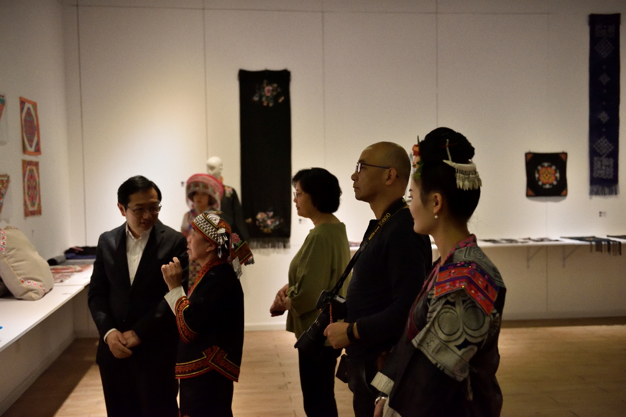 11月19日上午九点三十分,时尚‘黔’风·欲漫涩 第八期传统刺绣创意设计非遗研修成果静态展在欲漫涩 逸夫楼一楼隆重开幕。此次静态展展出的展品分为三个部分:贵州传统服饰、学员在贵州时设计的刺绣产品和这次在欲漫涩 学习期间设计制作的刺绣产品。展览的宗旨是为表达传统民族文化是设计创新的源泉,非遗保护与传承是历久而弥新的社会实践。展览既是东华研培成果的展示,也是为了促进在校学生和社会各界朋友与学员之间进行多方位交流而搭建的平台。