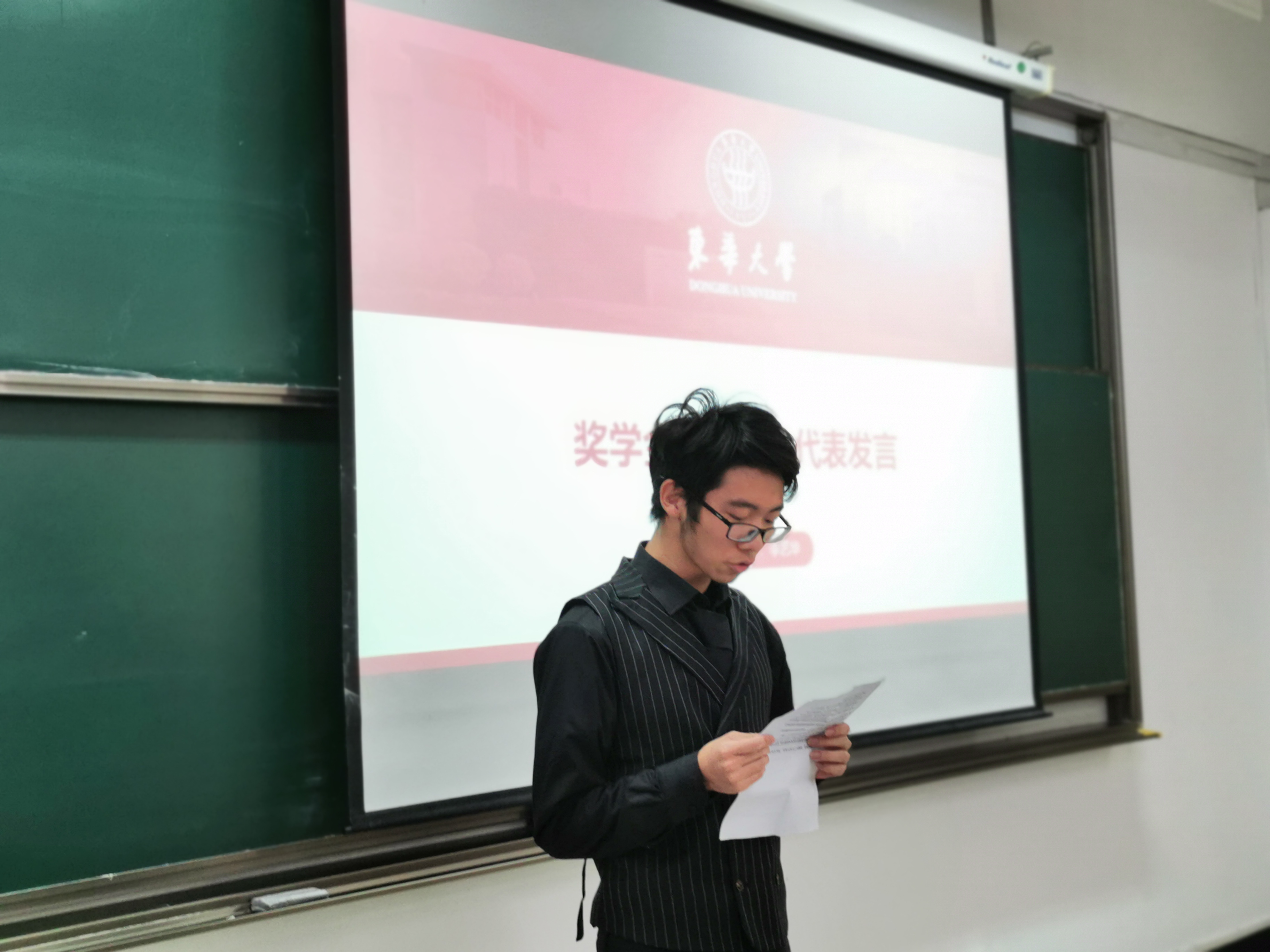 本年度“校友荣耀”奖学金获奖学生,19级产品专业李艺华作为代表发言,他提到感谢母校老师和校友赋予他的荣耀与鼓励,他将会再接再厉,继续出发,明日以己成就荣耀母校辉煌。