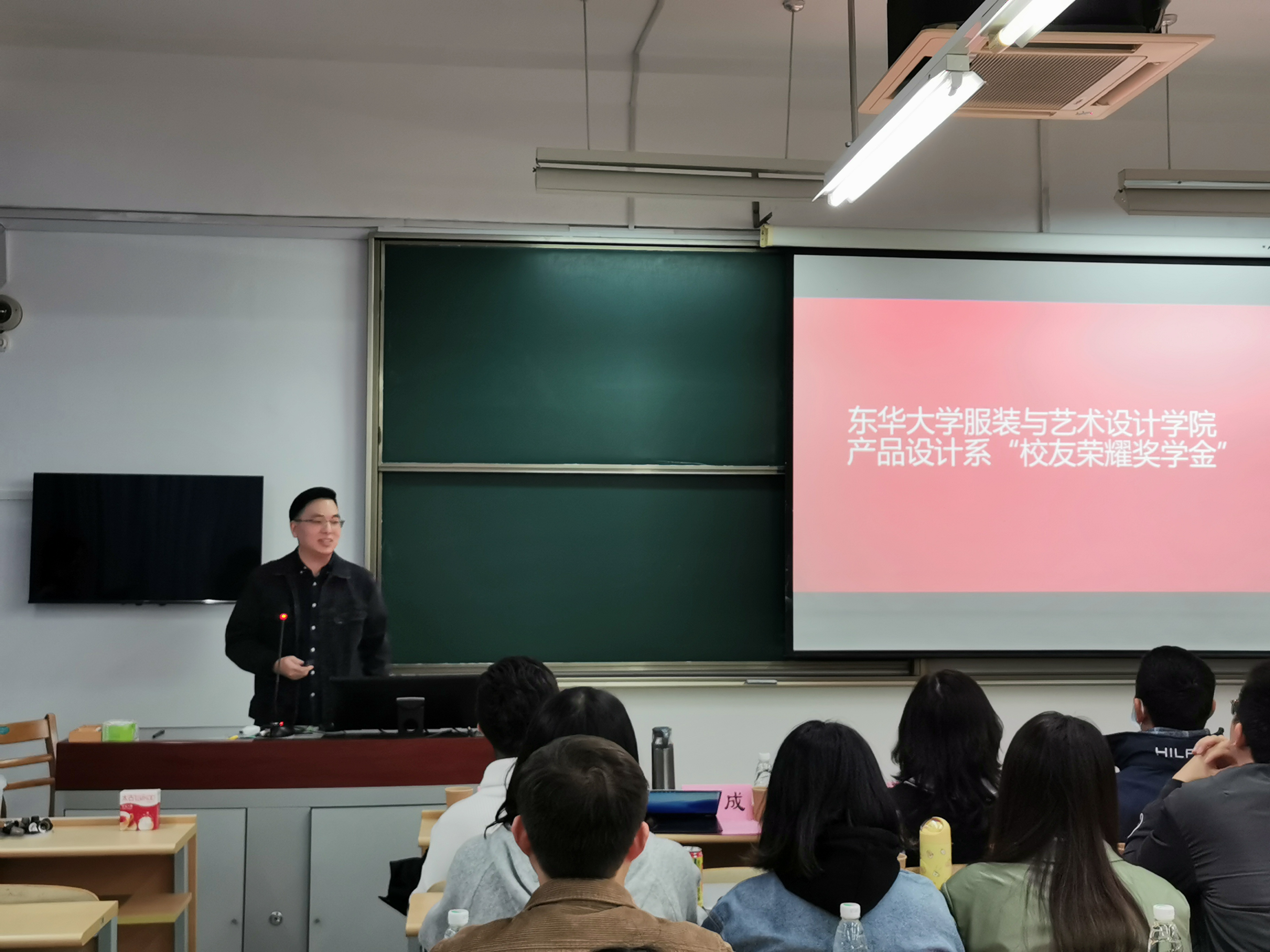 12月2日,欲漫涩 产品设计系“校友荣耀奖学金”颁奖典礼在延安路校区第二教学楼举行,服装欲漫涩 产品设计系主任余继宏、产品设计系副主任吴春茂、服装欲漫涩 学生工作办公室主任张金鲜和本科生辅导员出席本次颁奖典礼,邀请6位产品系杰出校友代表及欲漫涩 本科产品系100余名学生与会。