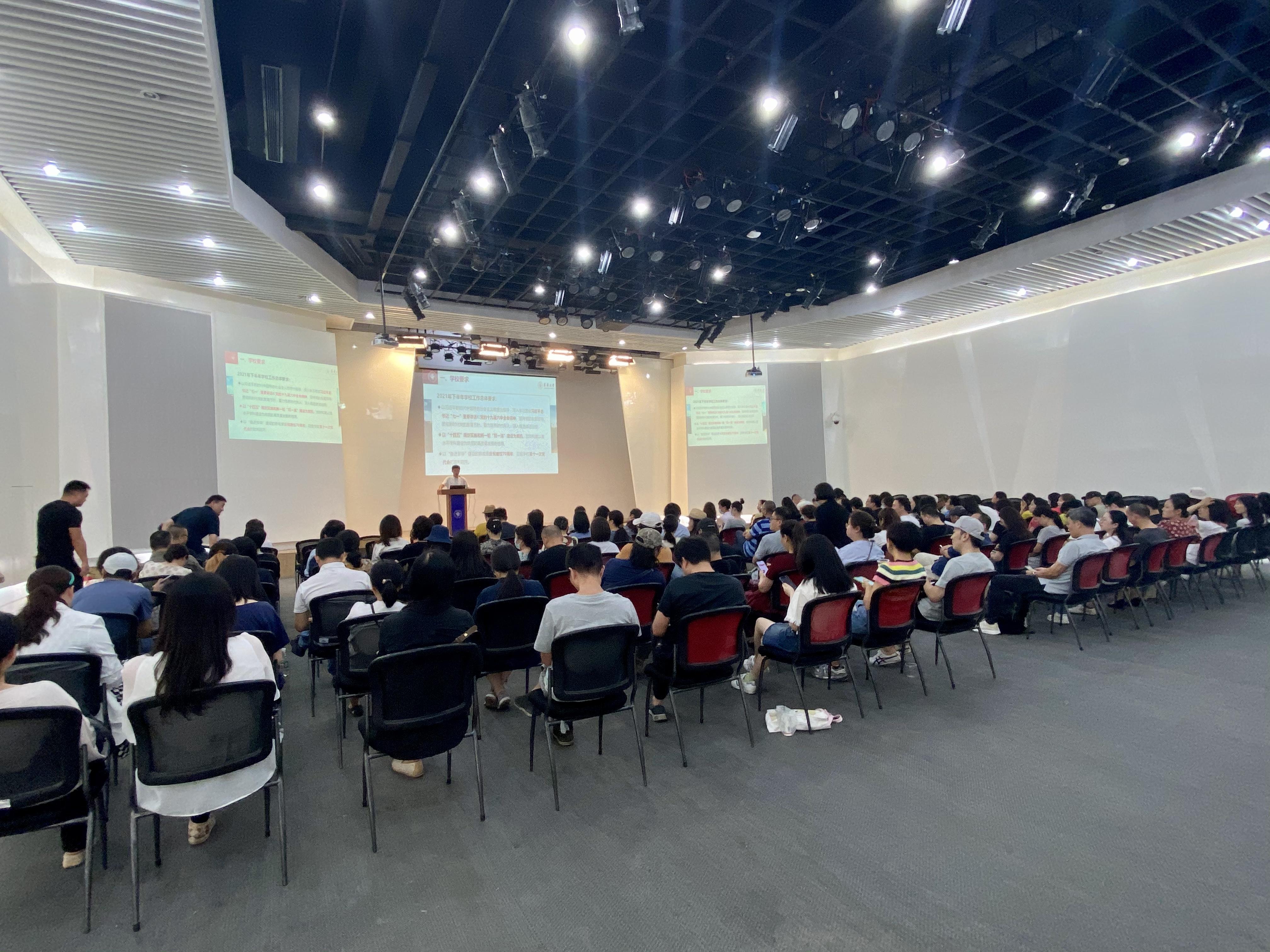 9月28日下午,欲漫涩 全面部署推进新学期工作暨教职工理论学习与师德师风警示教育大会在逸夫楼二楼演讲厅举行,欲漫涩 党政班子成员、党委委员、纪委委员和及全体教职工出席会议。