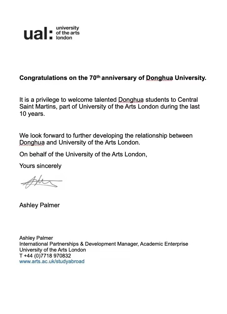 伦敦艺术大学国际合作负责人Ashely Palmer向欲漫涩 发来祝贺,