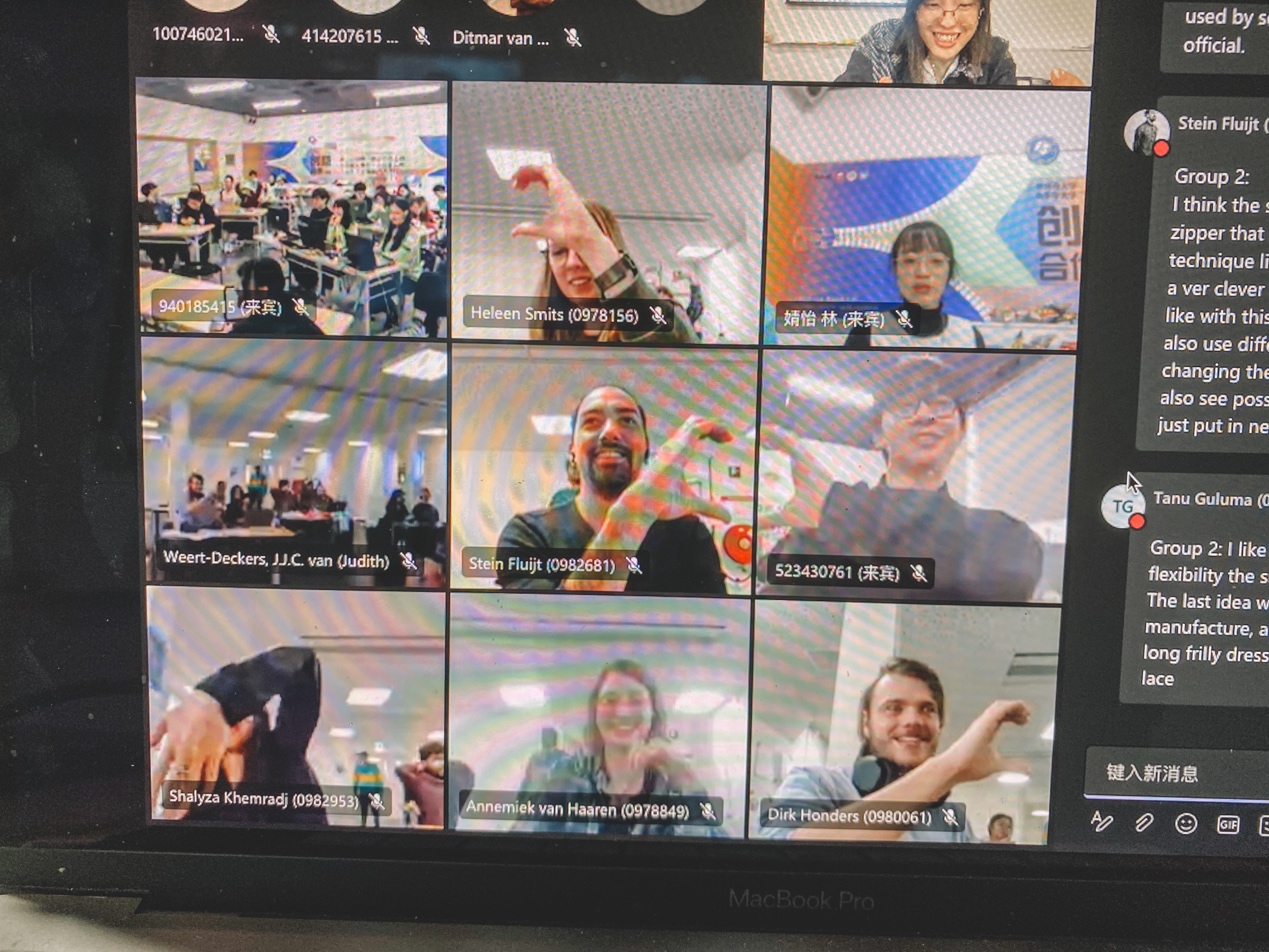 工作坊打造全英语交流的语境氛围,跨学科背景的思维互动,企业导师全程参与指导的交流环境,打造以“中荷学生小组+中荷导师+伟星集团设计师导师“的组成6只设计团队,如图4所示,通过“限时汇报”、“限时反馈”、“限时风暴”、“限时打分”等形式从各自擅长的专业领域的角度思考,集思广益,突破传统,创造未来,伟星集团的设计师团队也分别在上海和荷兰全程跟踪指导,结合行业经验,提出多维度的建议,帮助学生们从天马行空的想法深入到更加切合实际的概念,并且挖掘更深层的设计点。