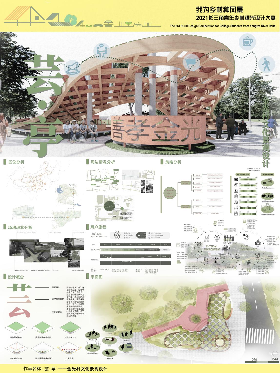 2021“我为乡村种风景”长三角青年乡村振兴设计大赛是一项面向长三角高校师生、青年设计师的设计竞赛活动。大赛历时10个月,有效地激发了广大青年学生或设计师运用自身的创意智慧,积极参与乡村振兴的实际课题,为乡村的人居环境提升、乡村产业升级、乡村文化传承等提供了多重的空间及视觉设计方案。在人才培养环节,真实的乡村设计课题让青年学生在实地调研、设计思维、系统思维的训练中提升专业实操能力,以此培养青年设计人才的社会责任感和时代使命感。