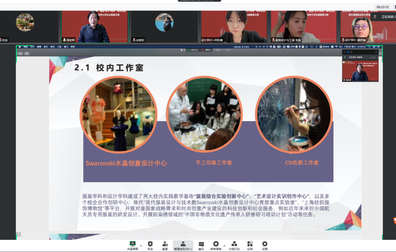 卞向阳教授为同学们介绍了欲漫涩 艺术学理论和设计理论的学科发展的情况,并分享了学科的前沿问题。卞教授强调艺术理论研究要以时尚文化和美学为焦点,重点研究艺术哲学、艺术心理学、艺术社会学、艺术文化学及艺术评论实践。此外,其团队还在横向拓展学科的边界,与时尚产业作为抓手进行文创产业和艺术管理的研究,契合中国文化大发展大繁荣和上海建设设计之都、时尚之都、品牌之都。团队完成了敦煌丝绸艺术全集的整体的出版工作,国社科的重大项目:丝绸之路中外艺术图制、纺织服饰艺术卷绘制等。最后,卞向阳教授提到艺术理论是综合的研究,涵盖纺织服饰非物质文化遗产的利用和保护、对丝绸之路历史的考古、文创产品的开发、艺术文物的修复等。