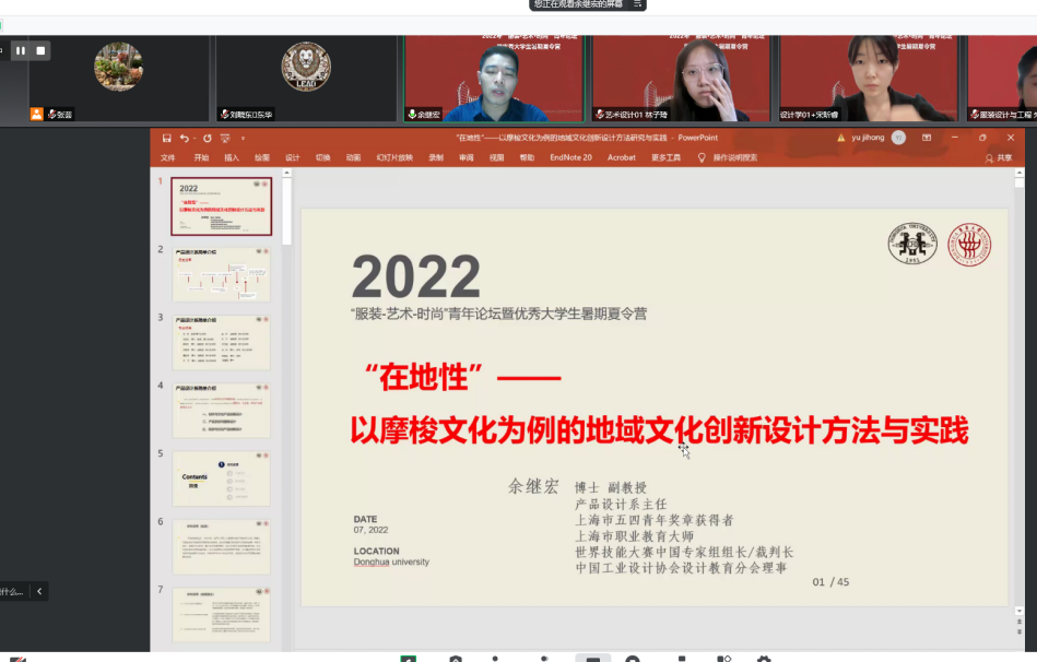 余继宏副教授介绍了欲漫涩 产品设计专业的师资概况,分享了自己在时尚和文化产品创新的研究,主要聚焦于乡村文化振兴、地域文化和非遗传承,以文化为基础实现乡村振兴。分享了关于摩梭文化的课题案例,通过设计调研准备、实地田野调查、素材整理、调研检查几个阶段,将地域和文化结合,探寻当地文化在物质层面、制度层面、哲学层面的意义和价值。通过实例告诉同学们产品设计能够帮助实现地域文化的传承和乡村振兴,并且提醒同学们在设计的过程中一定要注意设计的可持续性,要注意切换思维,结合当地村民的实际需要,解决实际问题。