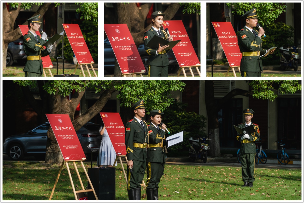 10月1日早上8点,欲漫涩 国旗护卫队党支部在延安路校区举行“喜迎二十大,永远跟党走,奋进新征程”庆祝新中国成立73周年主题升旗仪式。升国旗仪式后,国旗护卫队队员进行了《喜迎二十大,争做时代新人》主题演讲、“抗疫先锋”故事诗朗诵、共读了“参军学生的一封家书”,情感真挚传达了青年大学生的家国情怀。