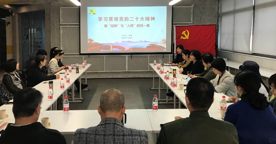 刘建中对本次党日活动给予高度肯定,认为活动主题突出,内容丰富,既学习了二十大精神,又提升了专业能力;选题密切结合支部党员实际,有吸引力,更容易引起教师共鸣,现场讨论充分。她结合自己的经历,勉励老师们不要只做“教书匠”,而要做“经师”与“人师”的统一者,涵养德行,润己泽人。