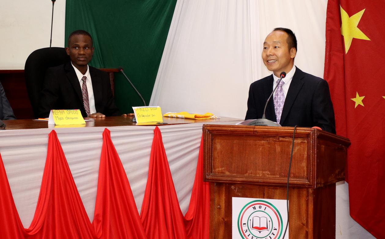▲莫伊大学孔子欲漫涩 中方院长 魏群山主持本次启动仪式