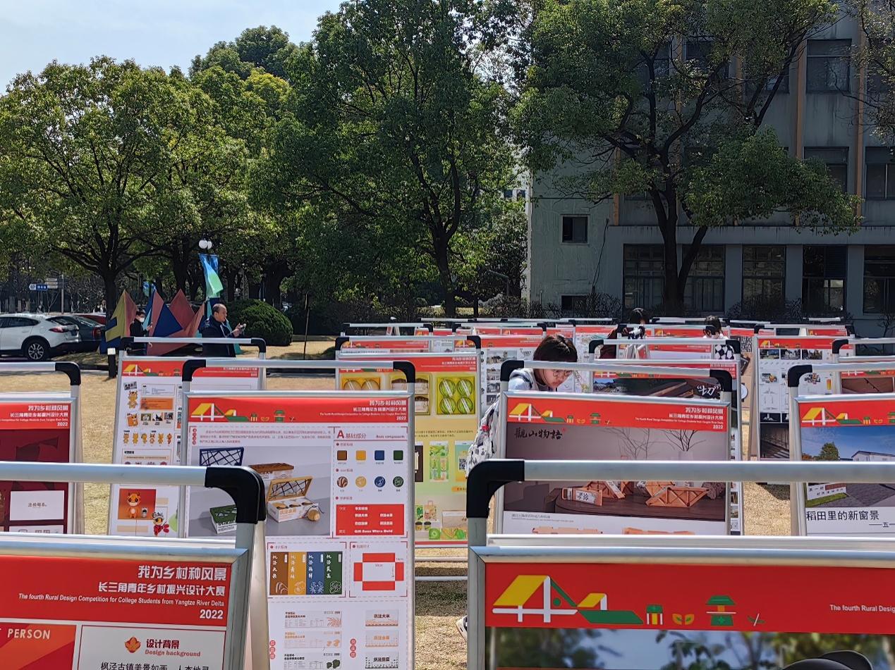 第四届“我为乡村种风景”长三角青年乡村振兴设计大赛共有全国范围内四十余所高校、企事业单位报名参赛并提交设计作品,经过第一轮高校专家线上评审与第二轮线下作品评审会,从400余件作品中筛选出31组优秀作品进行实地展览。继3月6日多所院校于上海市金山区田野巡展之后,此次草坪巡展以自由参观的形式面向师生开放。