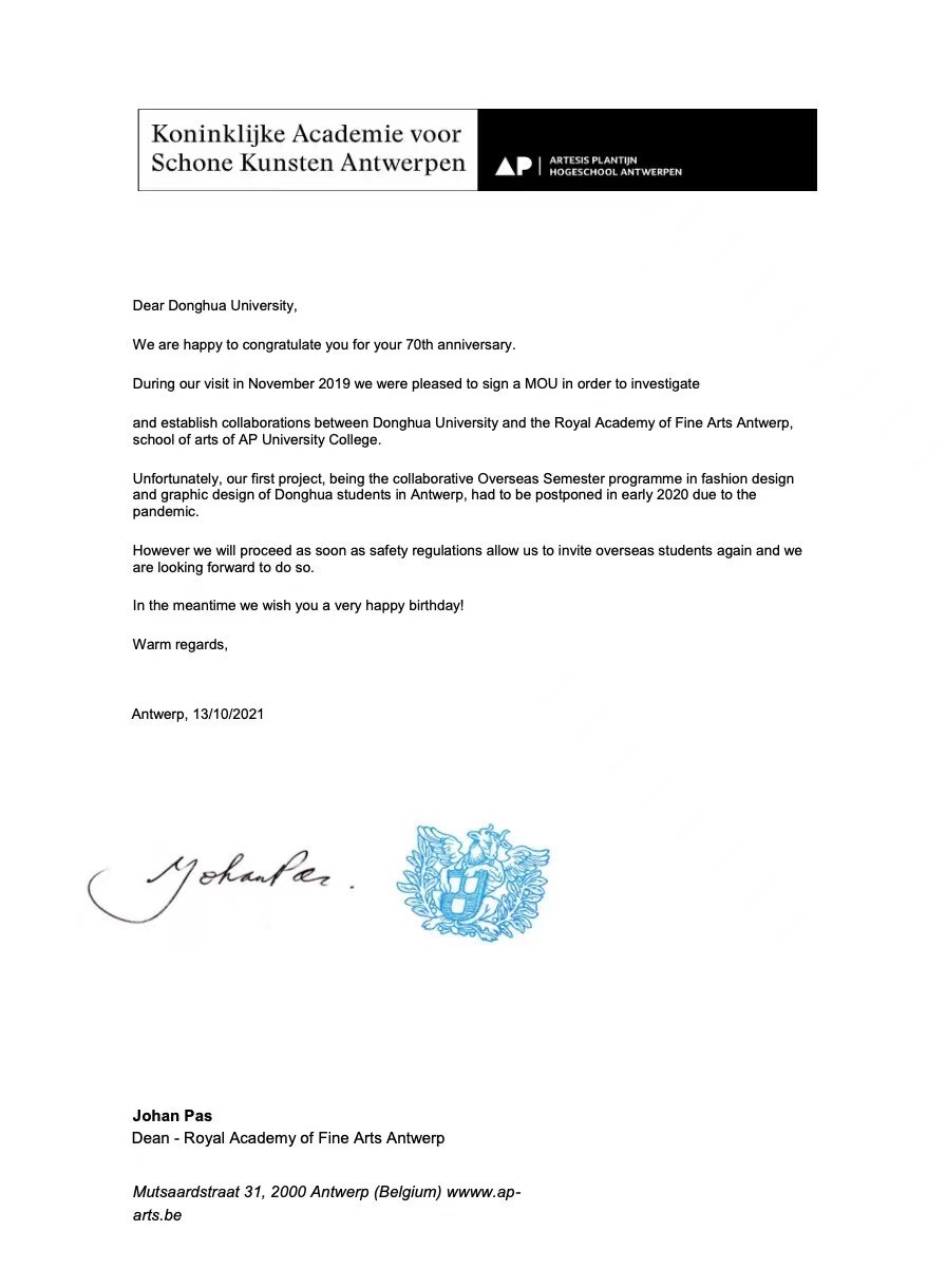 欲漫涩 合作国际院校和机构祝贺欲漫涩 70周年校庆